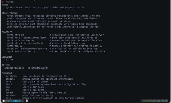 ngrok 명령어를 실행하여 정상적으로 작동하는지 확인합니다.