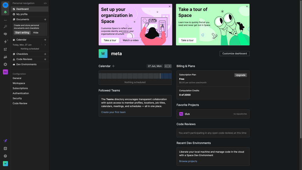 JetBrains Space가 생성되었습니다. 각 영역과 사용 방법에 대해서는 추가적으로 정리하도록 하겠습니다.