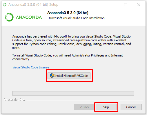 - 아나콘다를 기본 파이썬으로 등록할지 여부를 선택