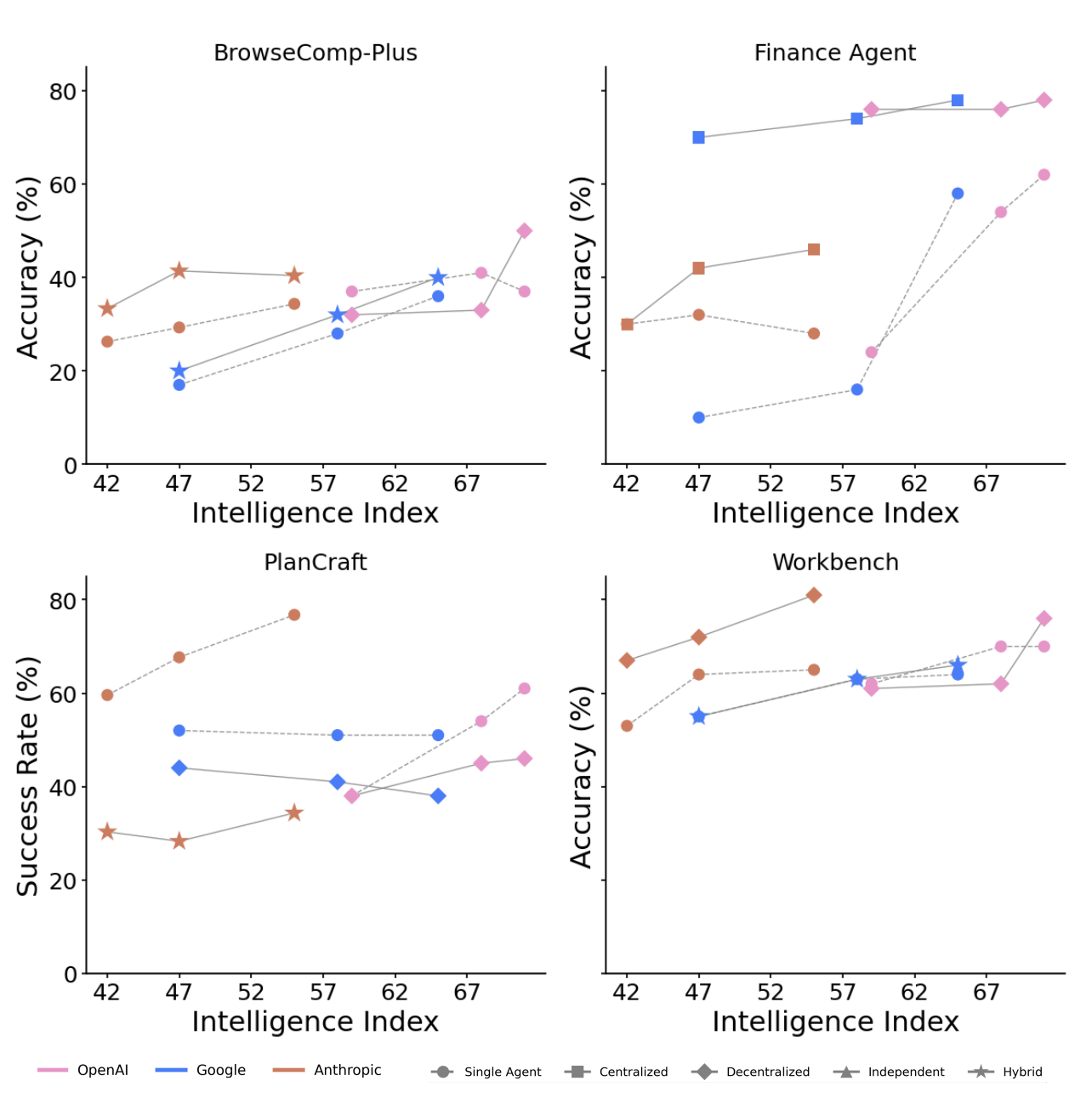 연구진은 이 gap을 메우기 위해 180개의 통제된 실험 설정을 구성하고, 에이전트 시스템의 스케일링 원리를 정량적으로 도출했습니다.