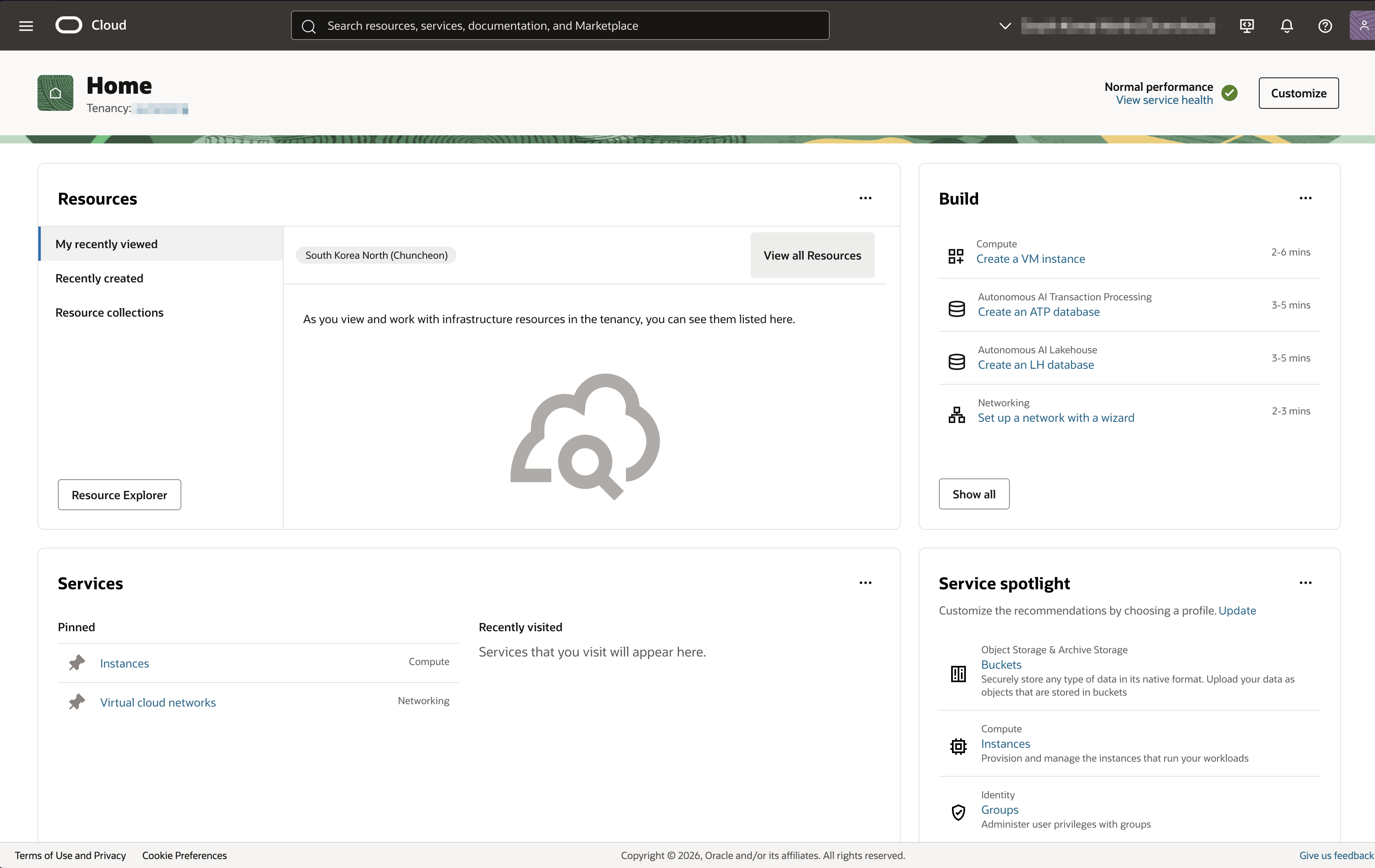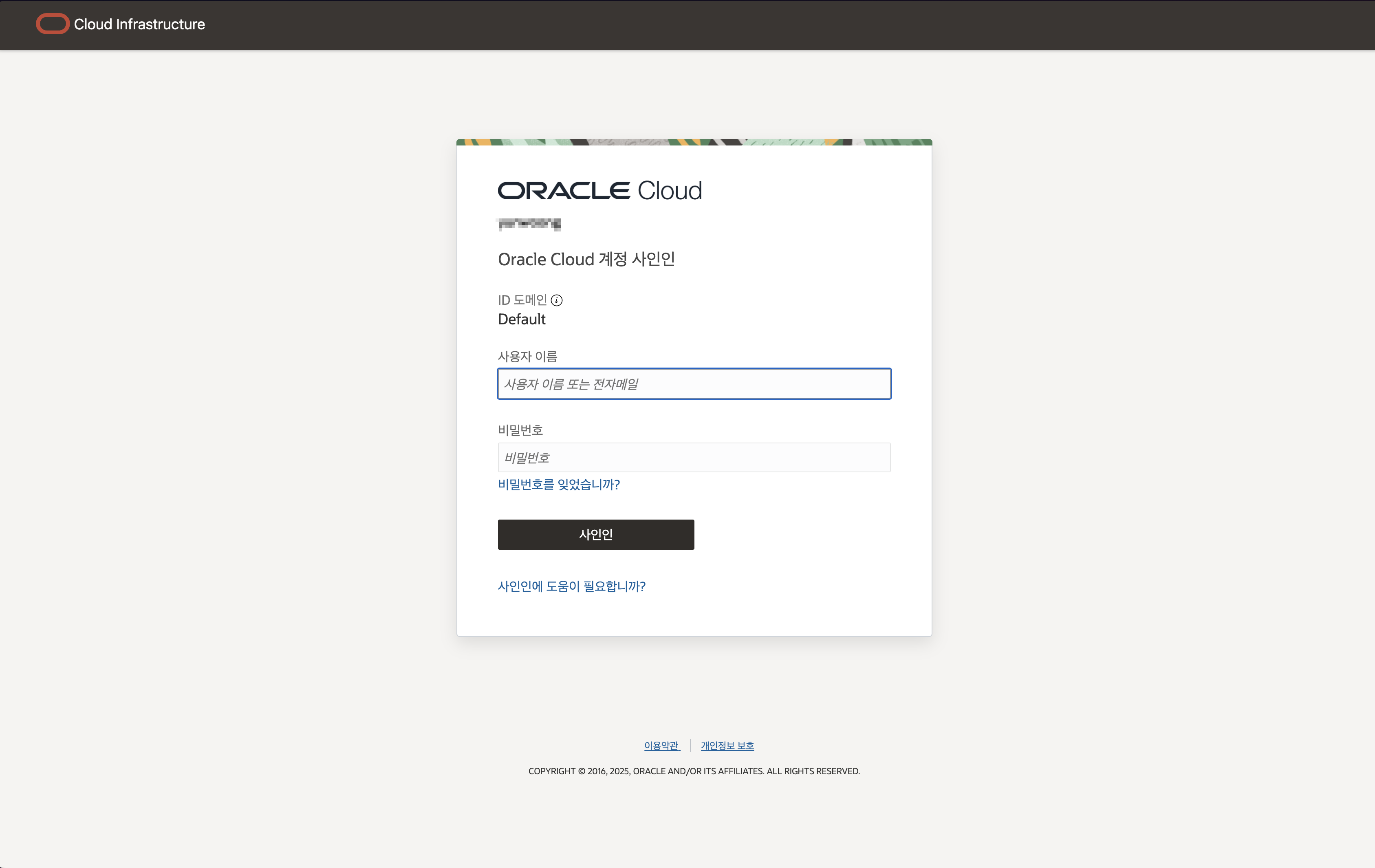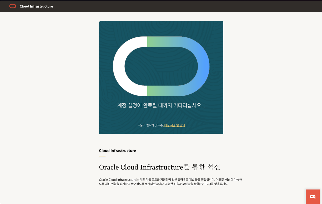 로그인이 완료되면 Oracle Cloud Infrastructure(OCI) 콘솔에 접속됩니다.