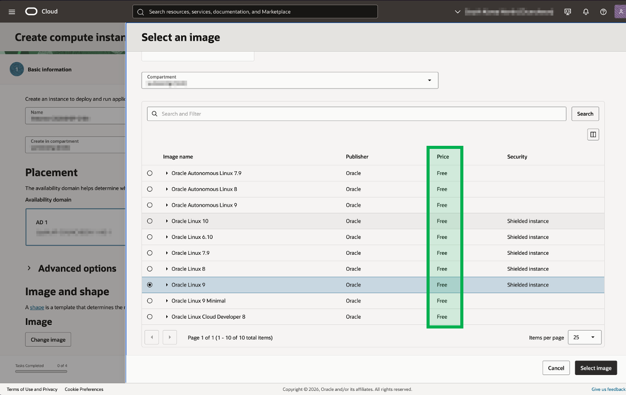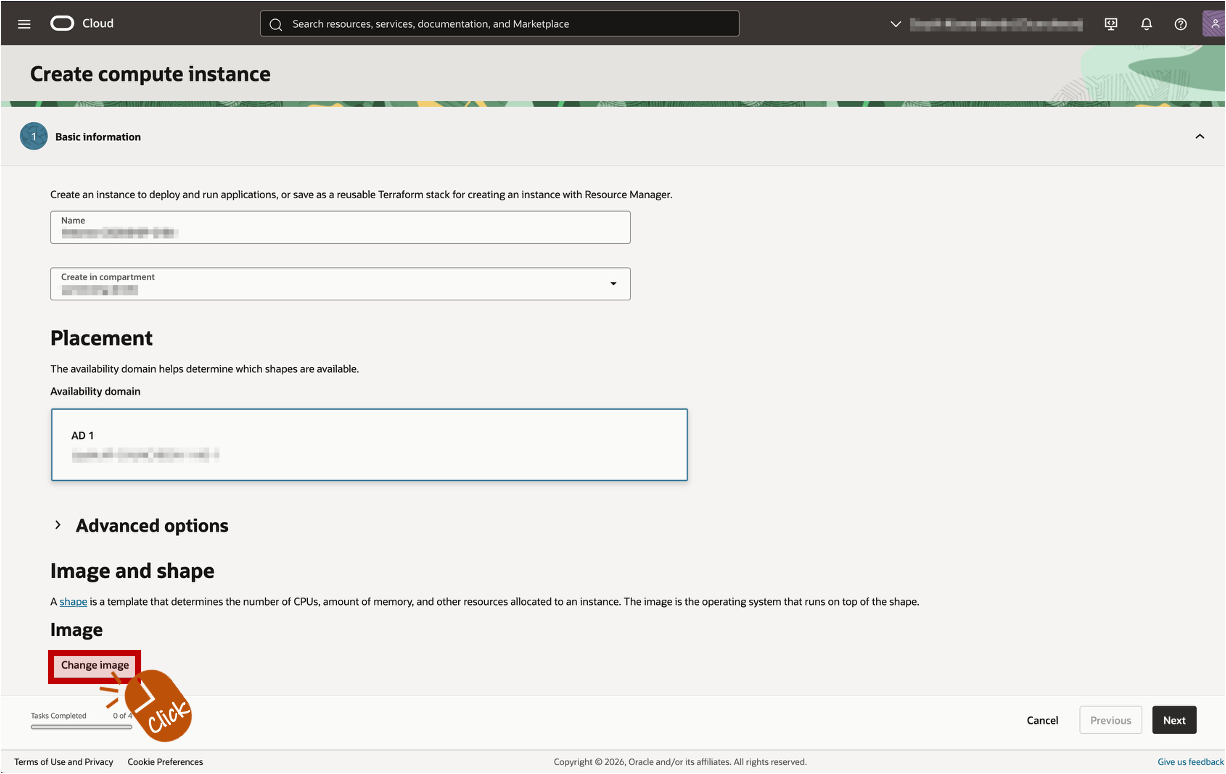 기본값은 Oracle Linux입니다. Chage image를 클릭해서 원하는 OS를 선택하세요.