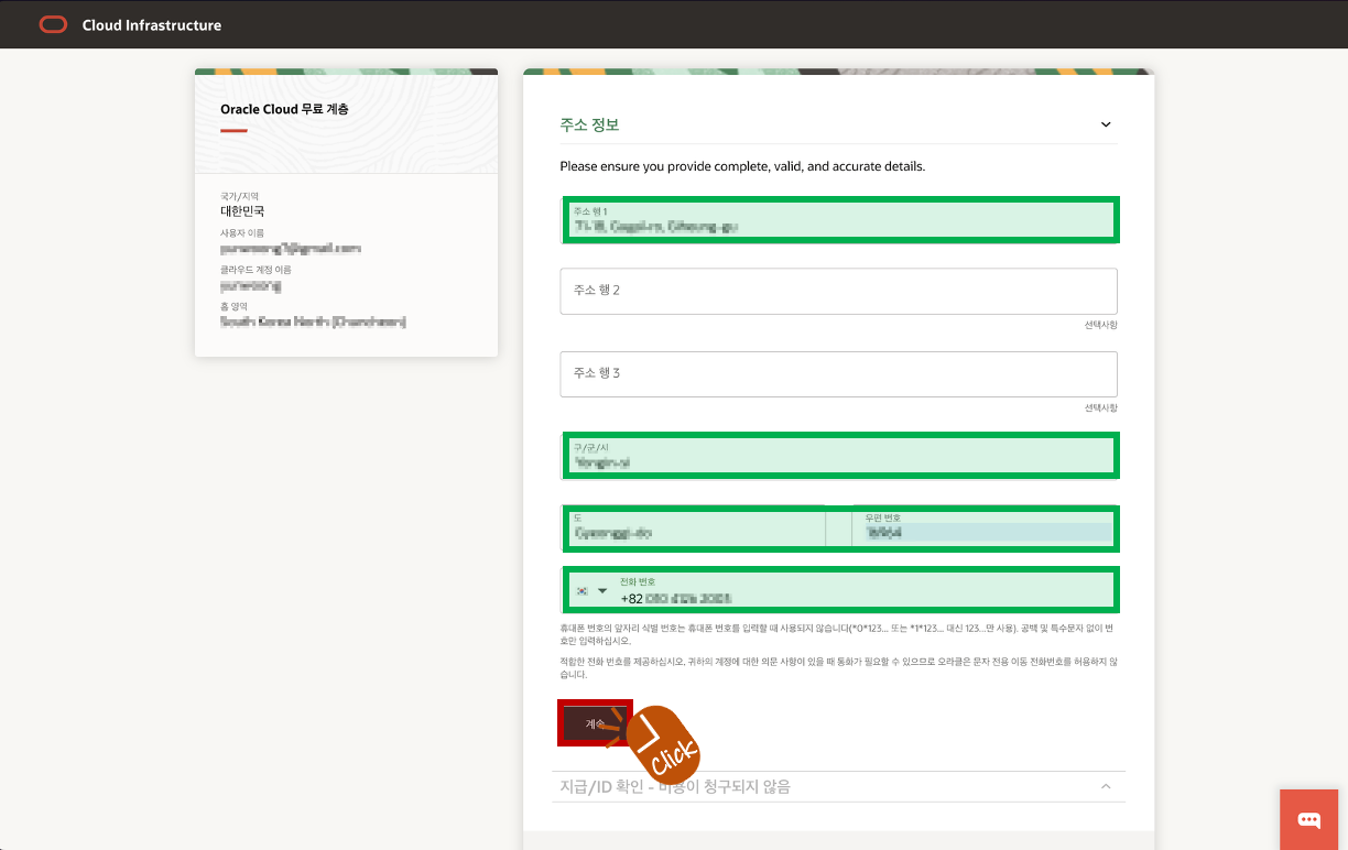 - 이메일: 기존에 Oracle Cloud에 등록하지 않은 이메일