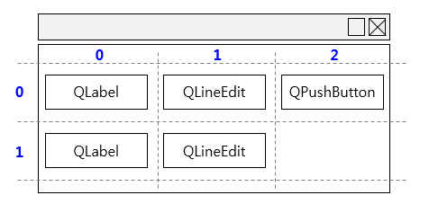 - 이러한 문제는 PyQt에서만 있는 것이 아니고 GUI 프로그래밍에서 공통으로 발생하는 문제입니다. 이러한 문제를 해결하는 고전적인 방법은 윈도우의 크기가 변경될 때 발생하는 시그널과 이를 처리하는 슬롯을 연결한 후, 해당 슬롯 내에서 윈도우 내부의 위젯의 크기와 위치를 다시 계산한 후 재설정하는 것이지만 PyQt는 이러한 문제를 쉽게 해결하고자 아래 다섯 가지의 Layout 클래스를 제공합니다.