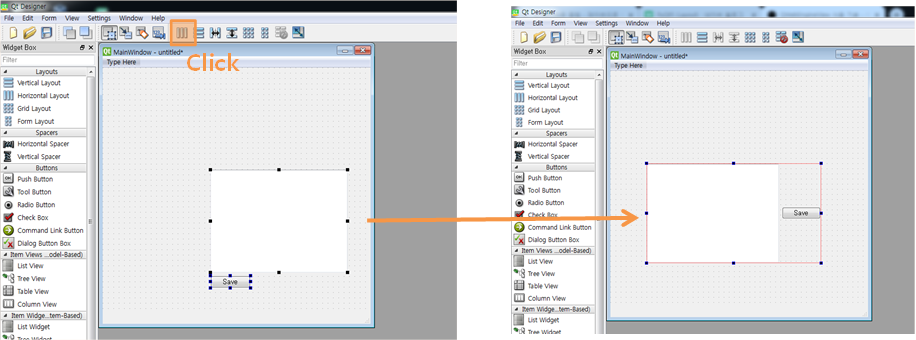 import sys from PyQt5.QtWidgets import * class MyWindow(QWidget): def __init__(self): super().__init__() self.setupUI() def setupUI(self): self.setGeometry(800, 200, 500, 500) self.textEdit = QTextEdit(self) #self.textEdit.resize(480, 450) #self.textEdit.move(10, 10) self.pushButton= QPushButton('Save', self) #self.pushButton.resize(480, 25) #self.pushButton.move(10, 470) layout = QHBoxLayout() layout.addWidget(self.textEdit) layout.addWidget(self.pushButton) self.setLayout(layout) if __name__ == "__main__": app = QApplication(sys.argv) mywindow = MyWindow() mywindow.show() app.exec_()